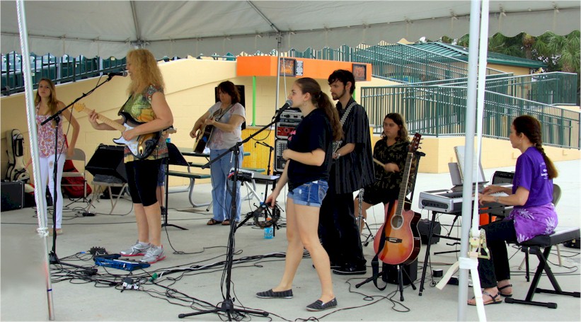 performing along with me to give them the experience of a band. 2013 performing with students at Roger Dean